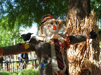 The scarecrow greets everyone at Pumpkinville and is so stylish!