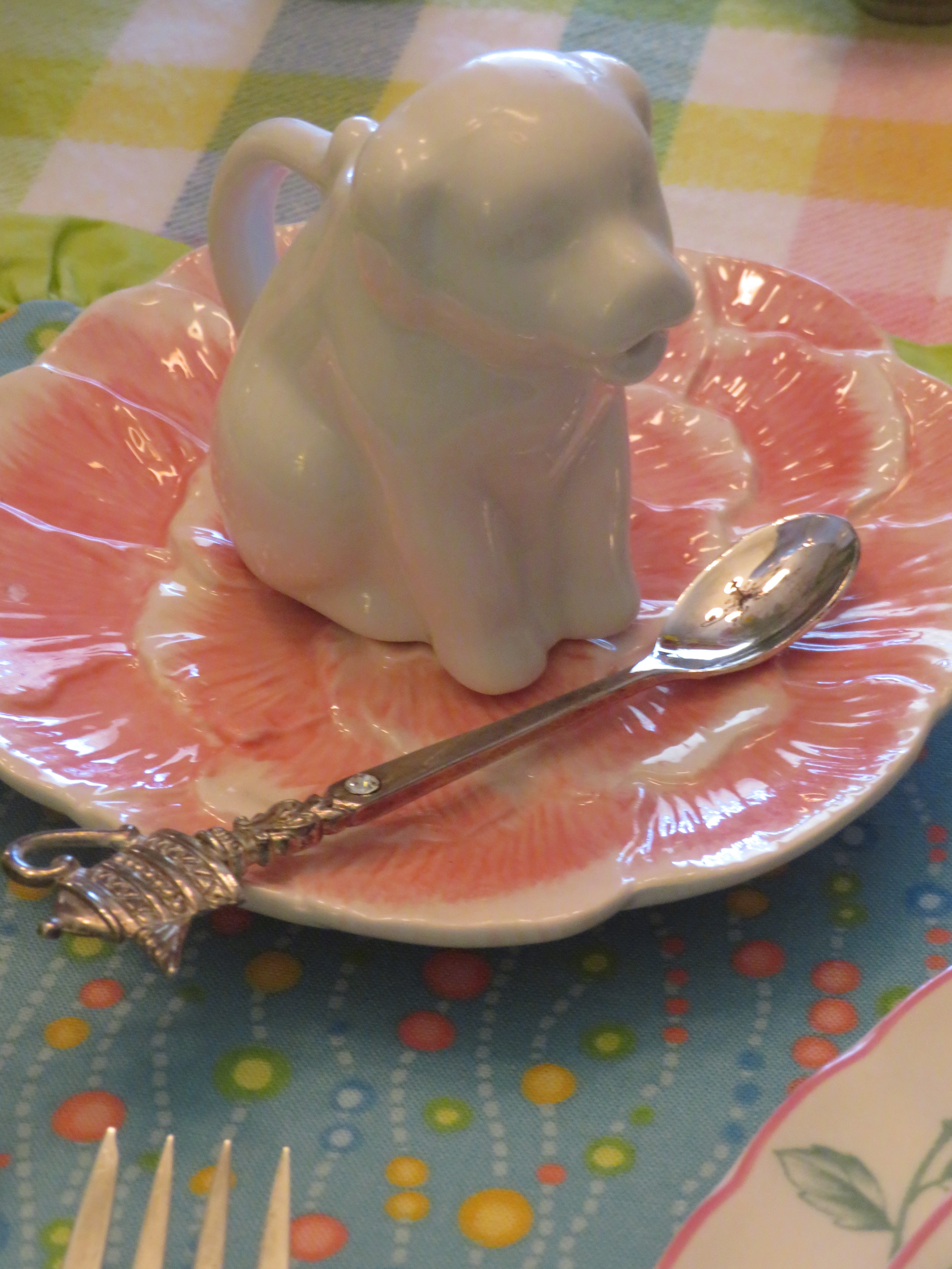 Fun little egg cups and individual cream pitchers were at each setting.